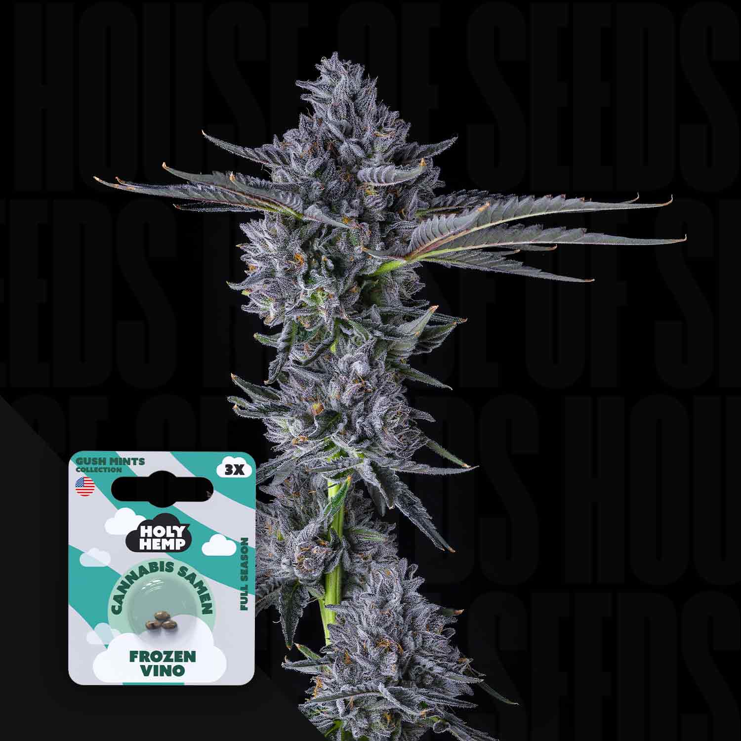 Frozen Vino es una variedad híbrida de predominancia índica que desarrolla un perfil complejo e intenso gracias a su cruce moderno entre Modified Grapes y Gush Mints. Las plantas desarrollan una estructura compacta y tupida con fuertes ramas laterales, lo que las hace ideales para técnicas de entrenamiento como SCROG o LST. Durante su periodo de floración de aproximadamente 56 a 65 días, emergen cogollos densos y resinosos con característicos reflejos púrpura oscuro, que impresionan tanto visual como aromáticamente. Frozen Vino alcanza su máximo potencial en climas templados a continentales, ofreciendo rendimientos de medios a altos. Con una altura de hasta 1,5 metros, esta variedad se mantiene manejable y, por lo tanto, es apta para cultivos de interior exigentes. Gracias a su contenido de THC superior al 25%, Frozen Vino cuenta con una potencia pronunciada que la sitúa entre las variedades premium, tanto visualmente como por sus efectos.