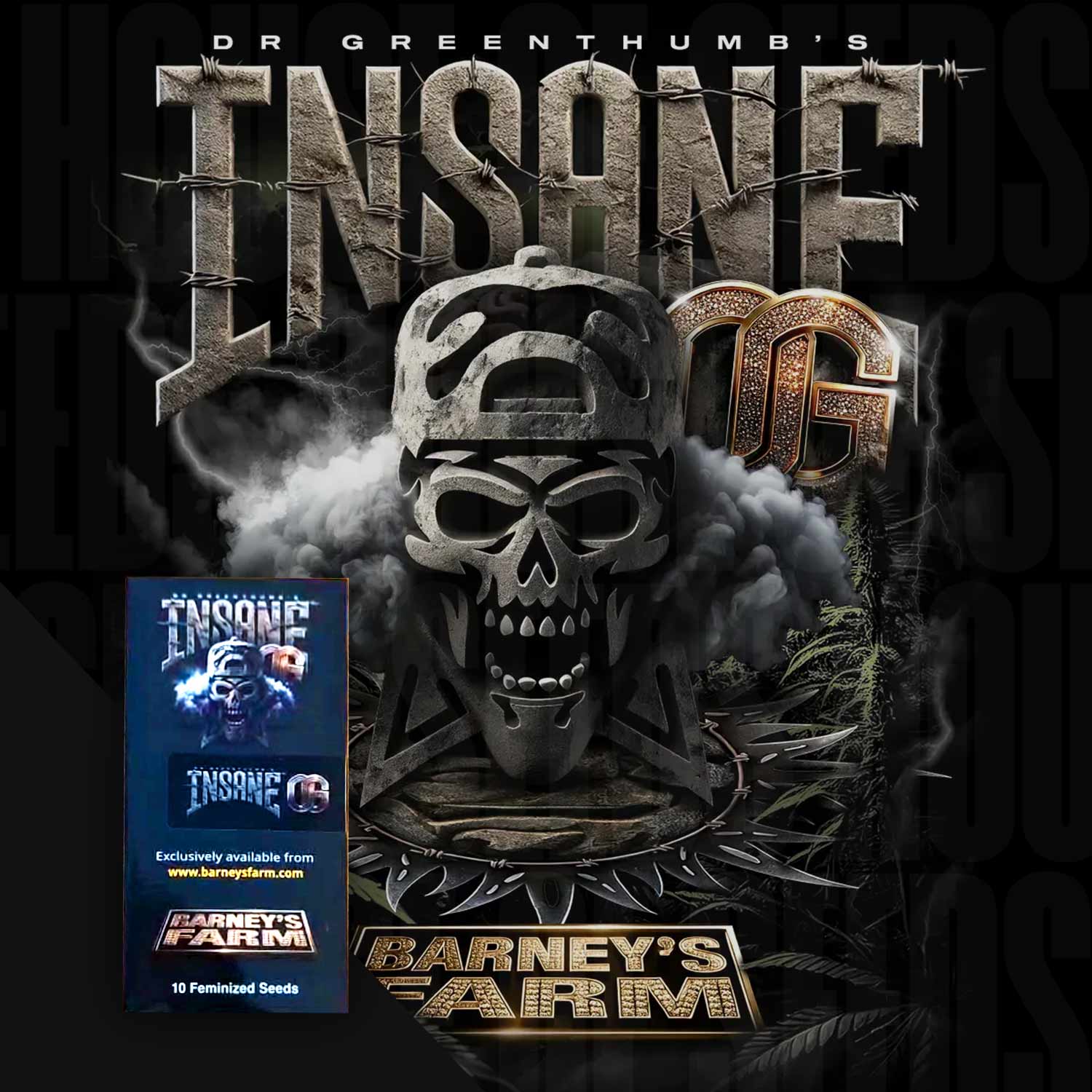 Insane OG es un híbrido de dominancia índica con un efecto potente y un perfil de sabor complejo y profundo. Desarrollada por Barney's Farm en colaboración con B-Real de Cypress Hill, esta variedad combina genéticamente tres pesos pesados del panorama cannábico: OG Kush, Bubba Kush y Granddaddy Purple. El resultado es una variedad que se caracteriza por un aroma intenso, una alta producción de resina y un crecimiento vigoroso. Las plantas crecen erguidas y vigorosas, produciendo flores densas y resinosas con un toque verdoso. En condiciones ideales, Insane OG puede alcanzar alturas de hasta 2,5 metros en exterior, mientras que en interior se mantiene más compacta, alrededor de 1,5 metros. El tiempo de floración es medio, aproximadamente de 56 a 63 días. Dependiendo de la ubicación y el cuidado, se pueden obtener cosechas de hasta 1,5 a 2 kg por planta en exterior, un rendimiento impresionante que la hace atractiva incluso para cultivadores ambiciosos. La estructura de las flores es firme y compacta. Están completamente cubiertas de tricomas, lo que las hace no solo visualmente atractivas, sino también muy interesantes para la producción de extractos. El aroma de esta variedad es rico: notas terrosas y especiadas se combinan con notas afrutadas dulces, complementadas con un toque a diésel y uvas maduras. Un sutil matiz a skunk completa su complejo perfil aromático.